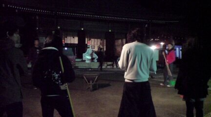 今日は市役所の設営後、護国神社会場をみんなで設営しました。