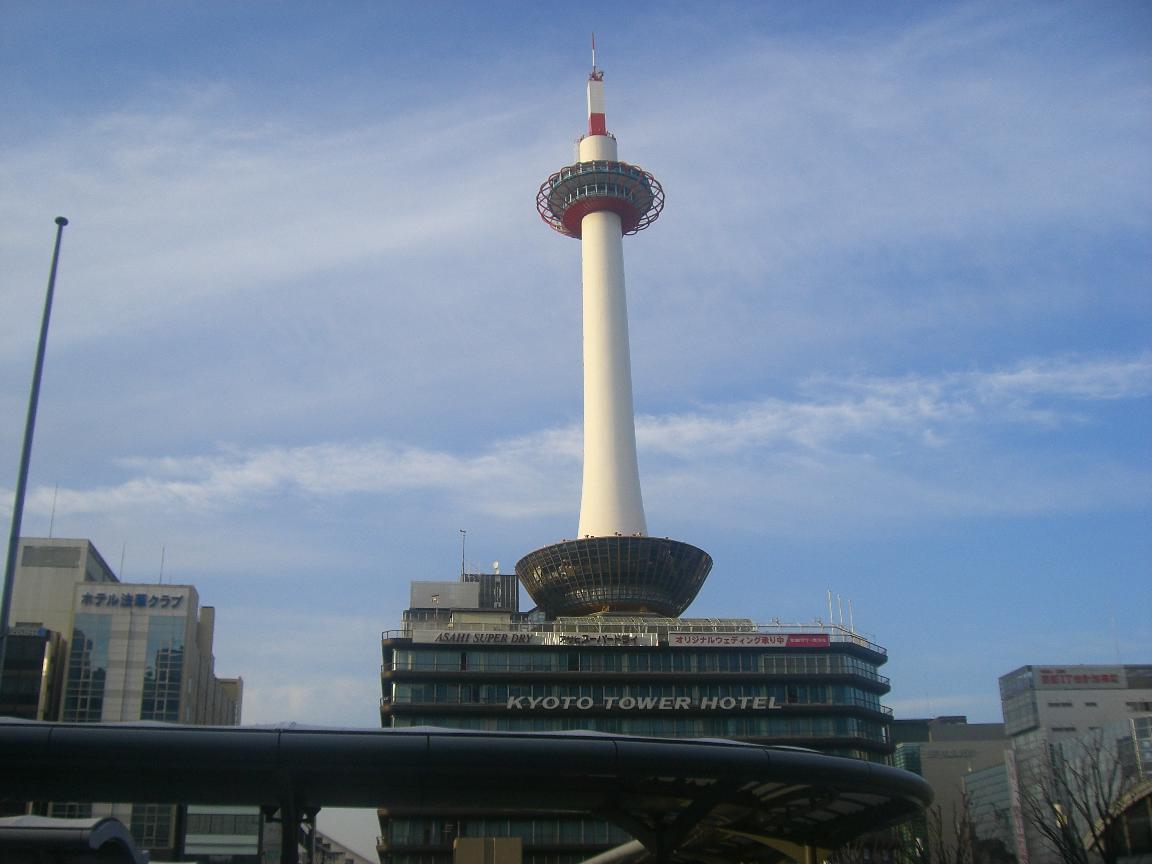 京都駅に着いたら、最初に待ち受けているのが京都タワー。京都タワーは中央改札から外に出てすぐのところにあるので、ぜひ見てみてください♪