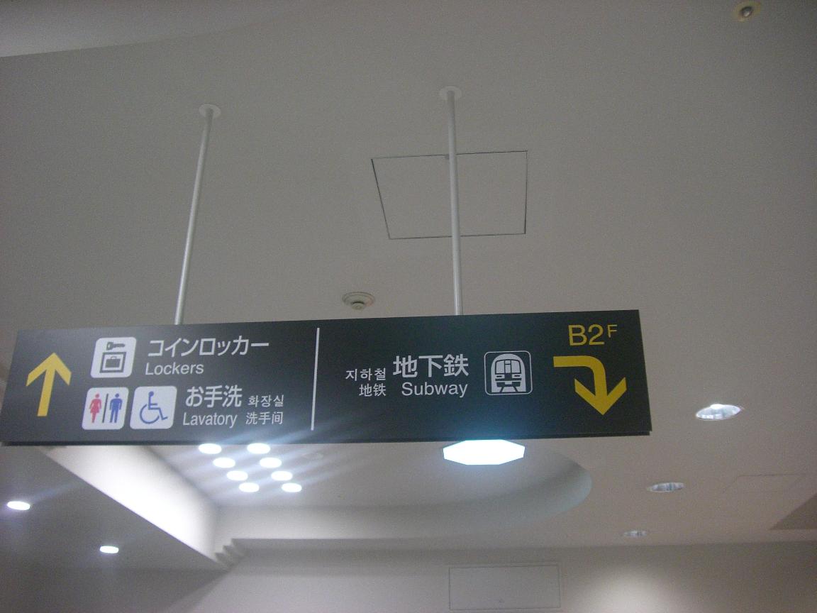 地下へのエスカレーターを見つけたら、こんな案内板に出会うはず。