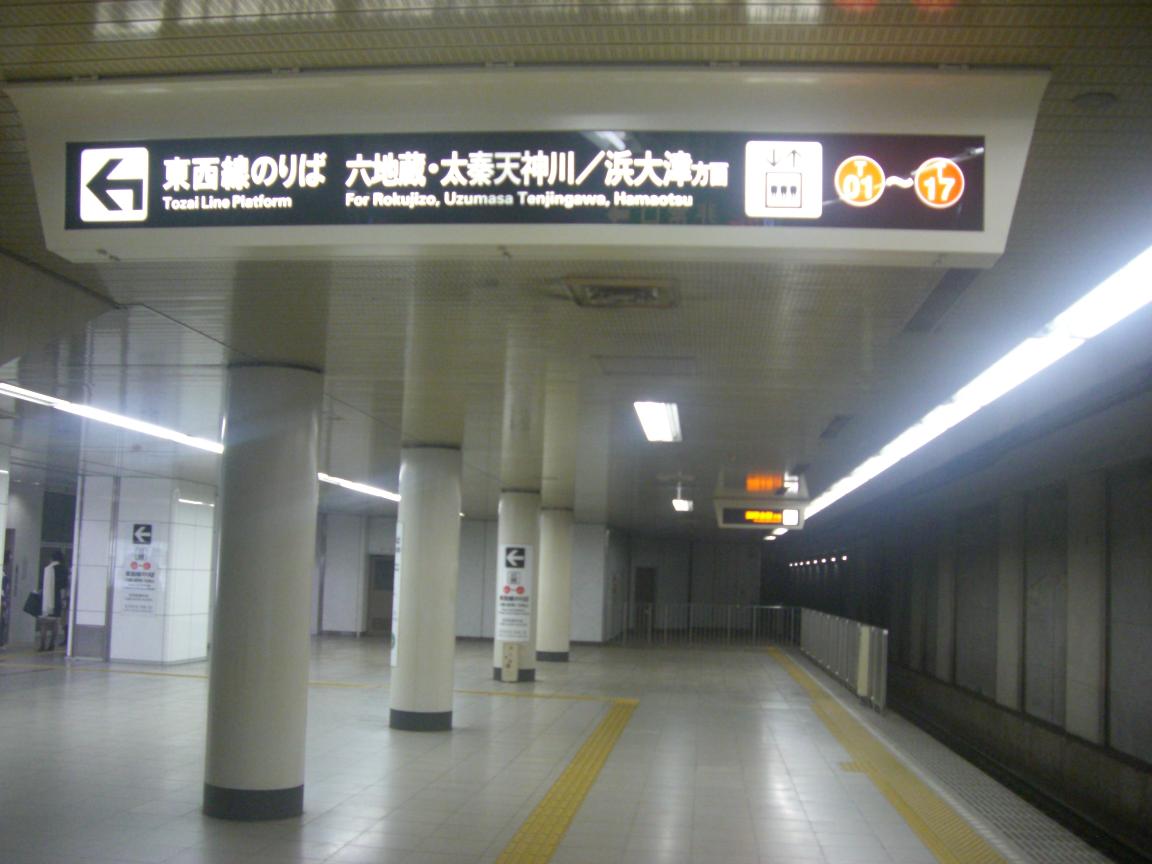 東西線のりばに着いたら、「六地蔵行」という電車に乗り換えて、1駅。
