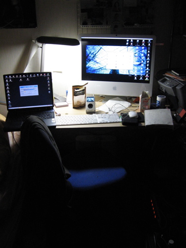 右にあるデスクトップはiMacです。